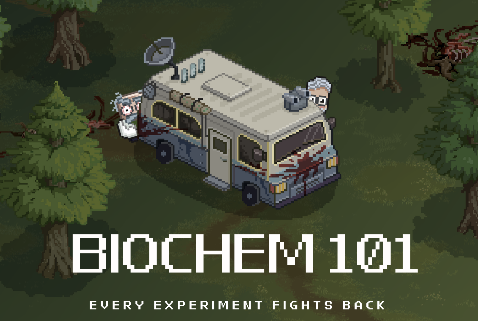 Biochem 101 is a co-op isometric beat-em up with a chem cooking minigame that focuses on fast, combo-based combat through the use of chemistry tools and mixing reagents together in battle. Each enemy is capable of one or two attacks. The types of enemies and number of enemies increase as the player progresses through the game. Every 3 levels there will be a final boss with 3 special abilities.